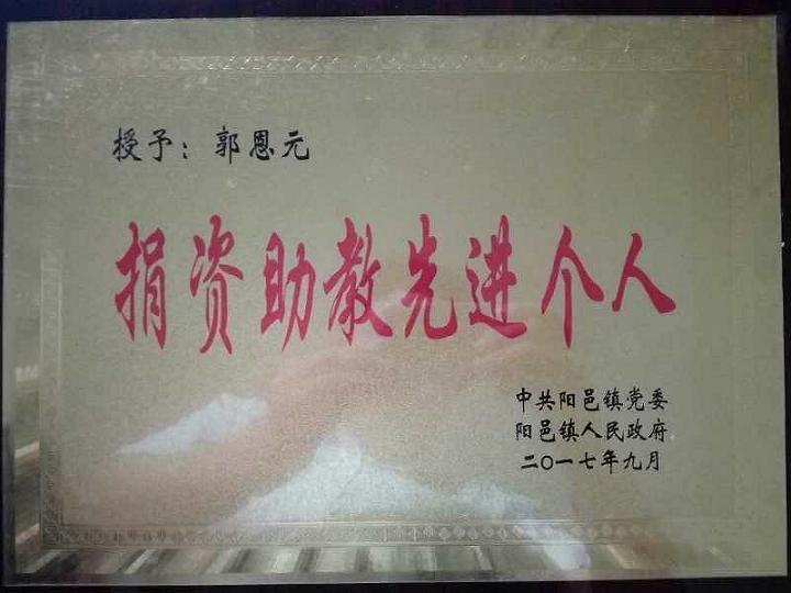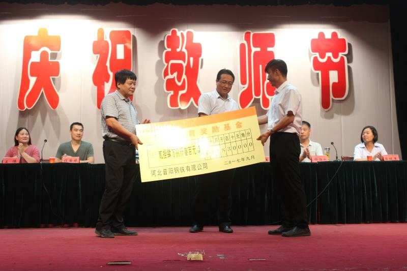 會上,優(yōu)秀教師代表做了典型發(fā)言,對捐資助教先進(jìn)單位、先進(jìn)個人及優(yōu)秀教師進(jìn)行的頒獎。我公司榮獲“捐資助教先進(jìn)單位”,董事長郭恩元榮獲“捐資助教先進(jìn)個人”??偨?jīng)理助理石現(xiàn)英代表公司為陽邑鎮(zhèn)捐贈了教育獎勵基金。