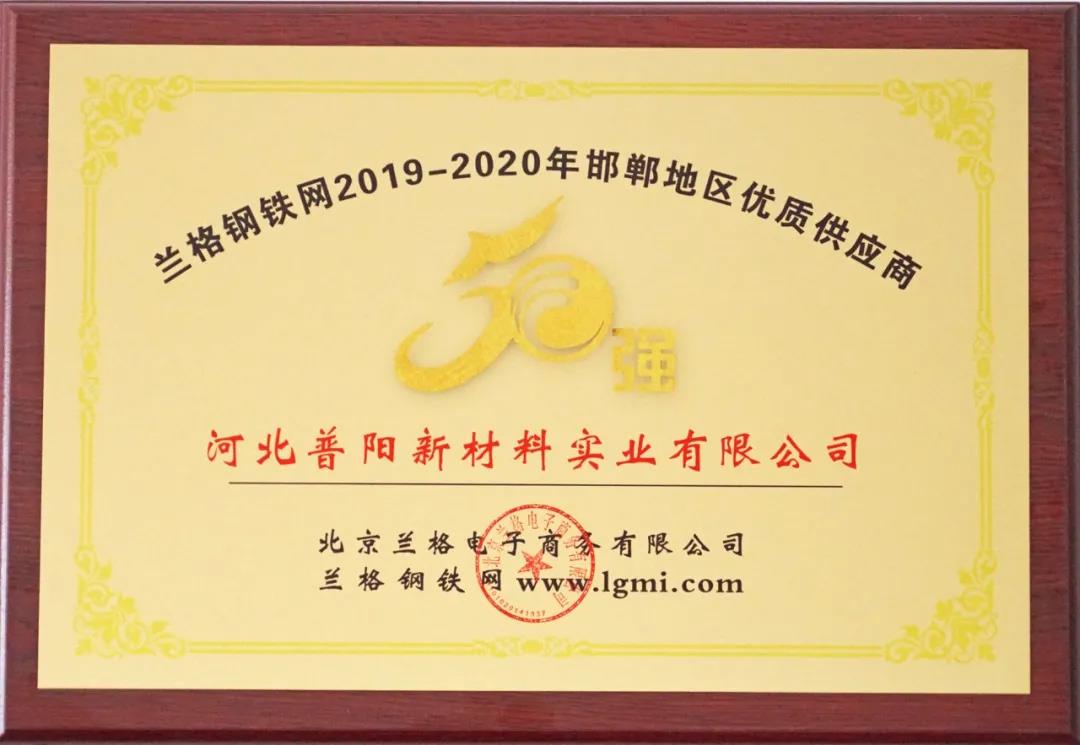 論壇對(duì)邯鄲地區(qū)優(yōu)質(zhì)供應(yīng)商和鋼鐵流通行業(yè)卓越領(lǐng)軍人物進(jìn)行了表彰,河北普陽(yáng)新材料實(shí)業(yè)有限公司榮獲“蘭格鋼鐵網(wǎng)2019-2020年邯鄲地區(qū)優(yōu)質(zhì)供應(yīng)商50強(qiáng)”榮譽(yù)稱號(hào),總經(jīng)理劉超當(dāng)選“蘭格鋼鐵網(wǎng)2020年度邯鄲地區(qū)鋼鐵流通行業(yè)卓越領(lǐng)軍人物”。
