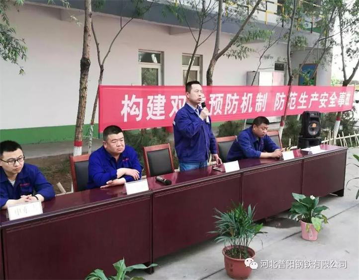 大會(huì)首先由安監(jiān)部王建東宣讀關(guān)于河北普陽鋼鐵有限公司開展2018年全國第十七個(gè)“安全生產(chǎn)月”活動(dòng)的通知。接著安監(jiān)部科長李紅兵宣貫了6月份安全生產(chǎn)月活動(dòng)主題:“生命至上、安全發(fā)展”以及關(guān)于安全生產(chǎn)月開展應(yīng)急和安全知識(shí)競賽的通知。