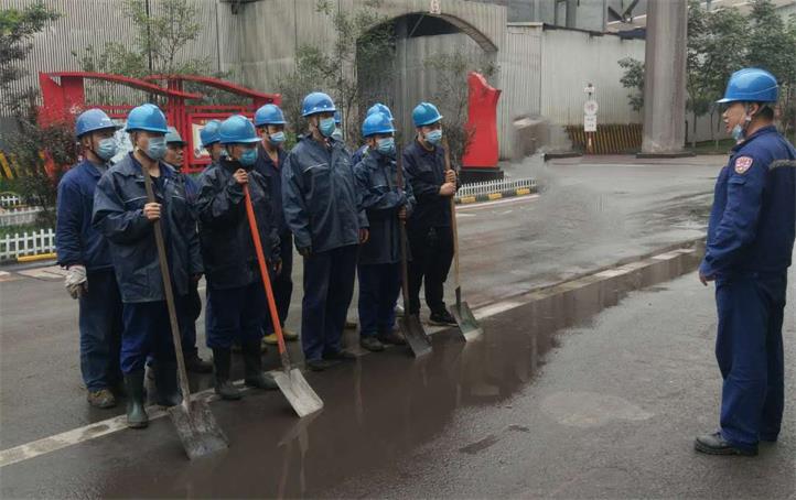 “外邊低洼處積水太多,路面情況不清楚,這進進出出的汽車、鏟車需要指揮引導(dǎo)!”