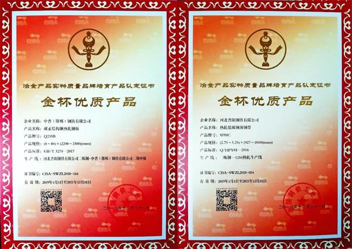 日前,中國(guó)鋼鐵工業(yè)協(xié)會(huì)公布2018年冶金產(chǎn)品實(shí)物質(zhì)量“金杯優(yōu)質(zhì)產(chǎn)品”名單,普陽(yáng)鋼鐵集團(tuán)申報(bào)的碳素結(jié)構(gòu)鋼熱軋鋼板(Q235B)和熱軋低碳素薄帶鋼(SPHC)榜上有名,榮獲冶金產(chǎn)品實(shí)物質(zhì)量“金杯獎(jiǎng)”。