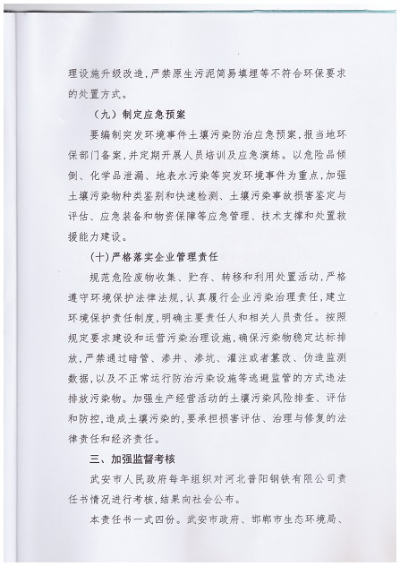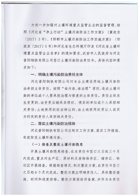 普陽鋼鐵-武安市人民政府土壤環(huán)境重點監(jiān)管企業(yè)污染防治責(zé)任書