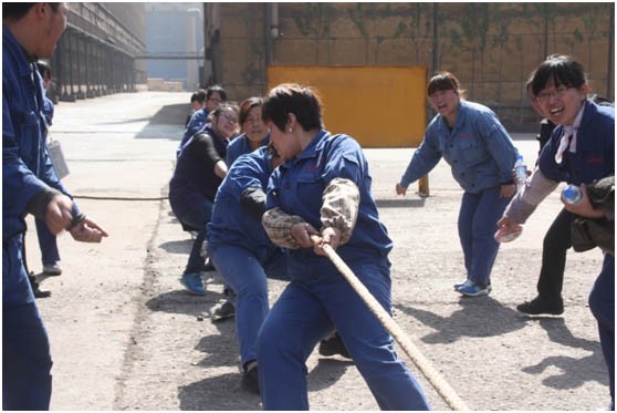 圖為質(zhì)管部女子拔河比賽的精彩畫面。據(jù)此次比賽組織者介紹,女子拔河是質(zhì)管部的優(yōu)勢(shì)項(xiàng)目,曾在2012年拿下全公司第一名的好成績(jī)。自2013年開始,由于公司取消了女子拔河項(xiàng)目,為使這個(gè)“傳統(tǒng)優(yōu)勢(shì)”繼續(xù)發(fā)揚(yáng)下去,此后,女子拔河便成了質(zhì)管內(nèi)部的“保留節(jié)目”。