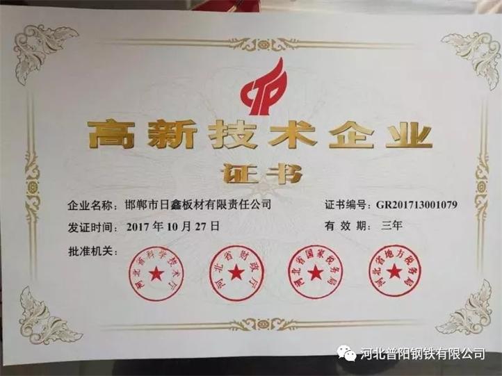 我公司日鑫板材廠通過了國(guó)家“高新技術(shù)企業(yè)”認(rèn)定