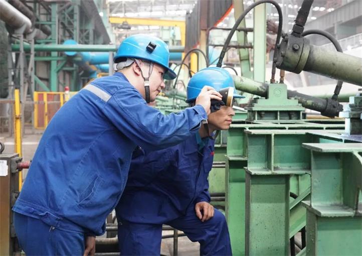 曾經(jīng)有一段時間,熱卷車間除鱗箱體頂部總是被高壓水擊穿。一開始郭超和工友們只是哪兒破就補哪兒,可剛補好,沒兩天就又被擊穿。郭超琢磨著可能是修補材料不行,就換成不銹鋼。然而,更換修補材料之后,效果依舊不好。不服輸?shù)墓愣自诔[箱體旁邊,觀察過鋼情況,慢慢地,他發(fā)現(xiàn),由于噴淋帶(除鱗集管)的寬度是一定的,而鋼坯的寬度是變動的,這就導(dǎo)致在高壓水除鱗時,超出鋼坯寬度的那部分高壓水就直接打在了除鱗箱體頂部,正因為這樣,擊穿的位置總是兩側(cè)更多一些。了解到這一情況后,郭超和工友們將厚一些的鋼板焊接在除鱗箱體內(nèi)部,并將兩側(cè)加厚。由外補改成內(nèi)擋,一個困擾大家很長時間的問題,通過用心觀察工藝,得到了有效的解決。郭超說,這件事兒對他的觸動很大,讓他認識到,學(xué)習(xí)提高總會經(jīng)歷“從外到內(nèi)、由表及里”的過程,中間會走一些彎路,但只要用心總結(jié),所走的每一步就都有用。關(guān)鍵是,要盯住問題不放,不能一直停留在“頭痛醫(yī)頭、腳痛醫(yī)腳”的程度。