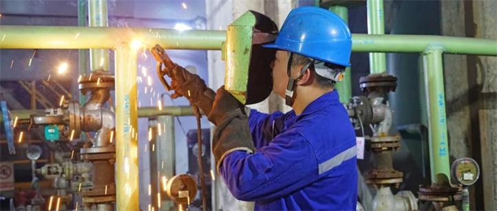 郭超笑了笑說道:“也可以這么說。事實上,對于我們普陽維修工來說,電焊只是我們必備技能之一。我們常說‘焊割不分家’,很多時候,我們在處理故障時,需要獨立完成切割與焊接。只不過在這兩種技能中,我在焊接方面比切割稍微好一點。我上學(xué)時讀的是職業(yè)中專,學(xué)的專業(yè)就是電氣焊。自2006年進廠以來,14年里一直干維修,長期的工作實踐對我電焊技能的提高有很大幫助。像‘心平手穩(wěn)落點準(zhǔn),立平仰焊一次成’這些焊工技術(shù)要領(lǐng),沒有工友的幫襯、沒有領(lǐng)導(dǎo)的栽培、沒有時間的浸泡與打磨,是練不出來的。”